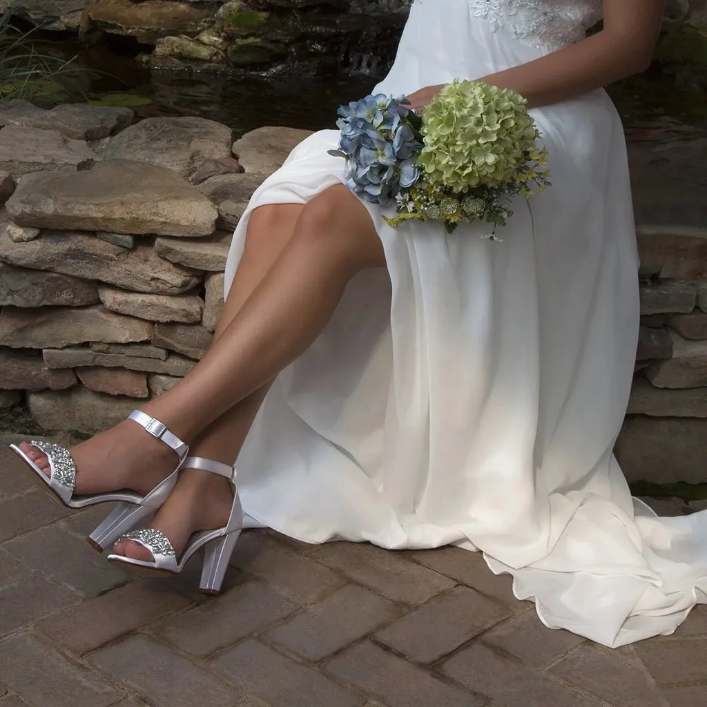 Benjamin Walk is the Leader in Bridal, Prom and Evening Footwear. They have been creating fashion footwear since 1896 – the oldest operating bridal shoe distributor in the US! They have tons of different styles to pick from. We currently have 28 different styles and colors in stores. Their shoes also have a wide arrange of colors to pick from like White, Black, Silver, Champange, Navy, and dyeable satin. The dyeable satin can be dyed to any color you want including different shades of ivory to match your bridal gown. We also offer children’s shoes through Benjamin Walk. Prices range from $40-$100 and our sizes range from a size 5-12. Please note our in store selection is limited to the most popular sizes.